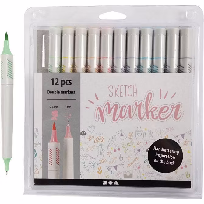 Rita och skriv fina illustrationer och bokstäver med denna vattenbaserade, trekantiga dubbeltusch. Sketch marken har en fin spets och en penselliknande spets som gör den perfekt till dekorativa illustrationer i bl.a. bullet journaling och lettering.
