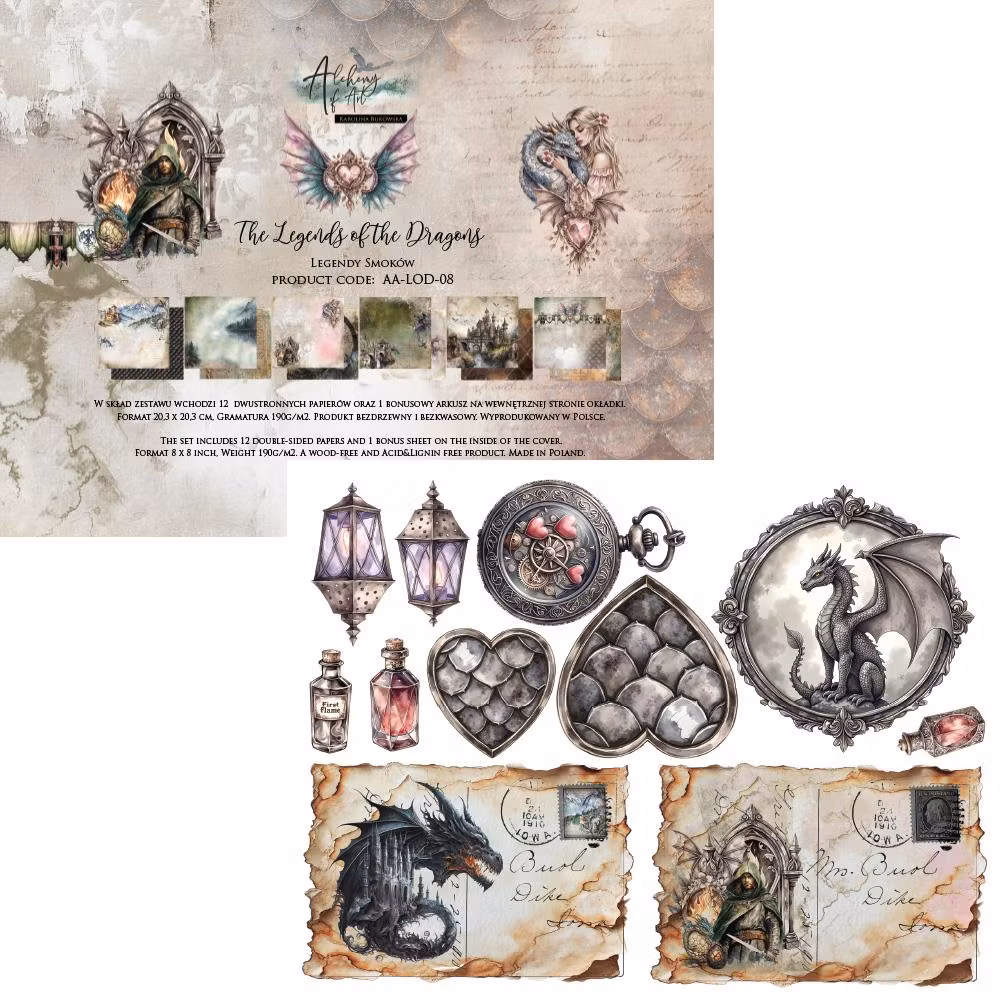 AA-LOD-08 The legends of the dragon 8x8 0 kr 99 kr Paper Collection Set 20,3x20,3 cm The Legends Of The Dragons, 190 gsm (12 sheets, 12 designs, 2x6 double-sided sheets, 1x bonus design 20x15 cm on the