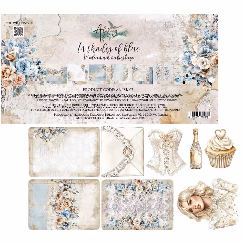 AA-ISB-07 In shades of blue 12x12 0 kr 105 kr Paper Collection Set 30,5x30,5 cm In Shades Of Blue, 250 gsm (6 double-sided sheets, 12 designs, bonus design 30x15 cm on the cover)
