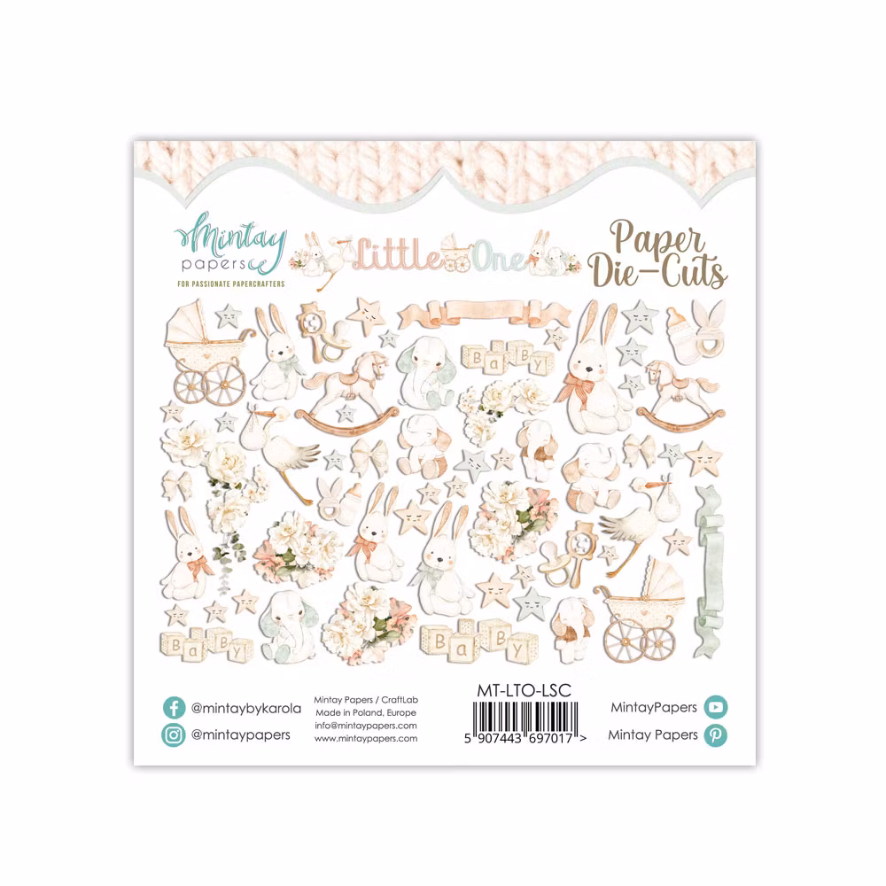 Die Cuts Little one Produkten är tyvärr slut i lager. :( 60 pieces of die cut paper elements that coordinate with the line.